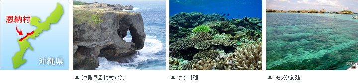 沖縄県恩納村の海はサンゴ礁が形成されていて、モズク養殖などの生産の場であるとともに、世界的な海洋性リゾート地域と